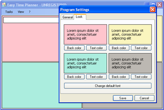 La pantalla se divide en cuatro secciones: el cuadrante superior izquierdo es para tareas urgentes e importantes, mientras que el de la esquina inferior derecha es para eventos poco significativos. Otros dos son para tareas urgentes-delegables y tareas a largo plazo importantes pero no obligatorias. Easy Time Planner permite modificar colores y tipografías de los cuadrantes, así como asignar un atajo de teclado o cambiar el comportamiento de la ventana.